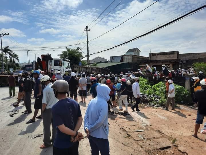 Tại hiện trường, xe tải biển Long An đã bị lật nghiêng, nhiều phương tiện khác hư hỏng nặng. Nhiều mảnh vỡ của các phương tiện vương vãi trên mặt đường.