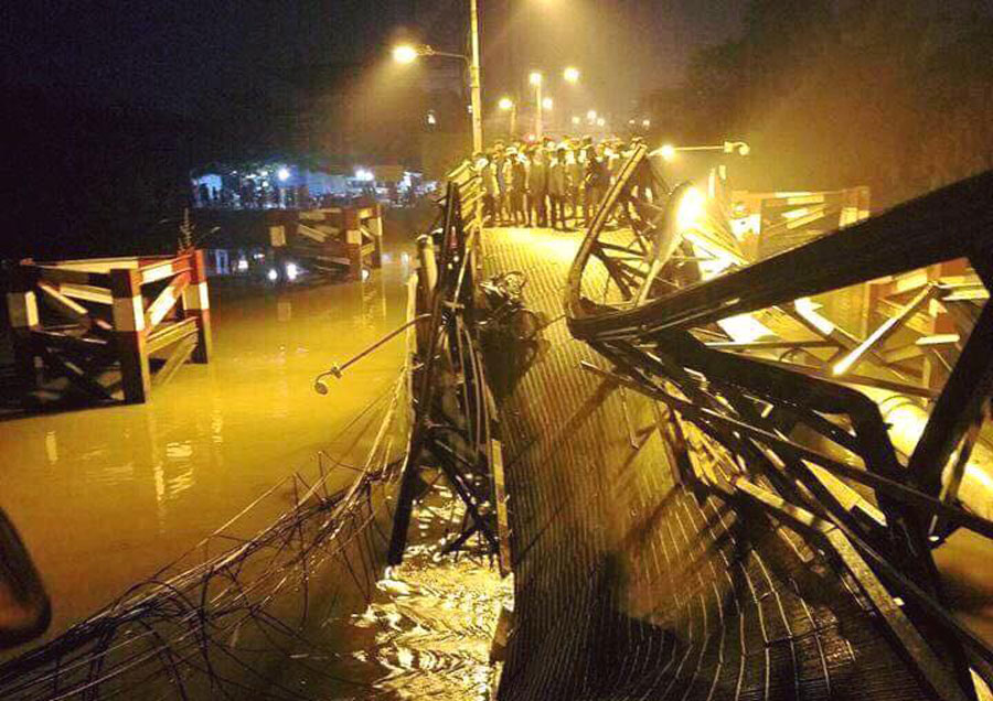 Anh Việt Anh (40 tuổi), một người dân sống sát bên cầu cho biết đã nghe tiếng động của kim loại rất lớn, khi anh chạy ra ngoài xem thì đã thấy cầu sập, chiếc xe tải chìm xuống sông, một xe máy nằm vắt vẻo trên thành cầu.