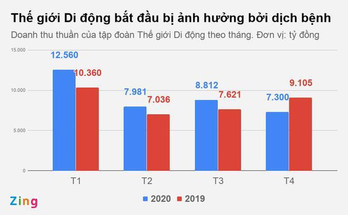 Trước đó, trong báo cáo tài chính quý I, Thế giới Di động ghi nhận doanh thu thuần 29.350 tỷ đồng và lãi sau thuế 1.130 tỷ sau 3 tháng đầu năm. Doanh thu và lợi nhuận của tập đoàn tăng trưởng lần lượt 17% và 9% so với cùng kỳ 2019. Công ty cho biết kết quả kinh doanh trong quý đầu tiên chưa bị tác động lớn bởi dịch Covid-19.