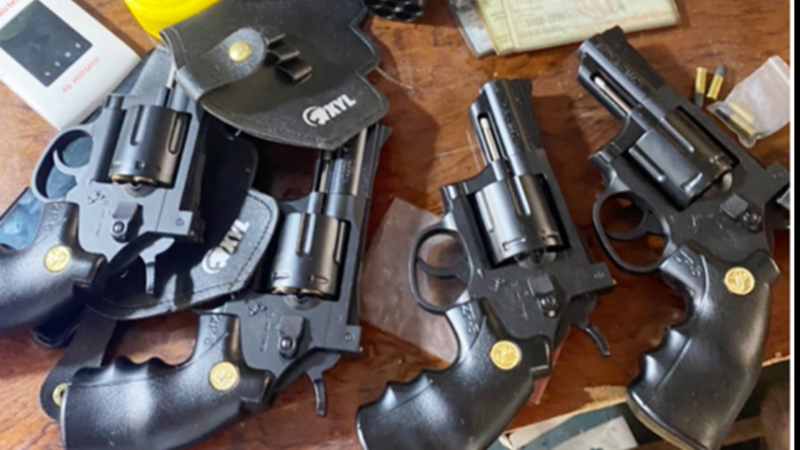 Khám xét khẩn cấp nơi ở của Phúc, công an còn phát hiện, thu giữ 4 khẩu súng dạng rulo, 7 viên đạn, 1 bộ dụng cụ sử dụng ma túy, 1 cân tiểu ly.