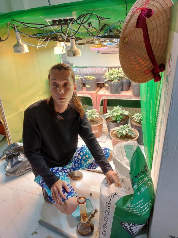 Qua khám xét, lực lượng chức năng đã thu giữ số tang vật gồm 1,685 kg cần sa khô, 74 cây cần sa tươi đang trồng trên sân thượng với khối lượng hơn 22 kg, 1 bình thủy tinh để hút cần sa, 1 điện thoại di động cùng một số tang vật khác dùng để phục vụ cho việc trồng và chăm sóc cây cần sa.