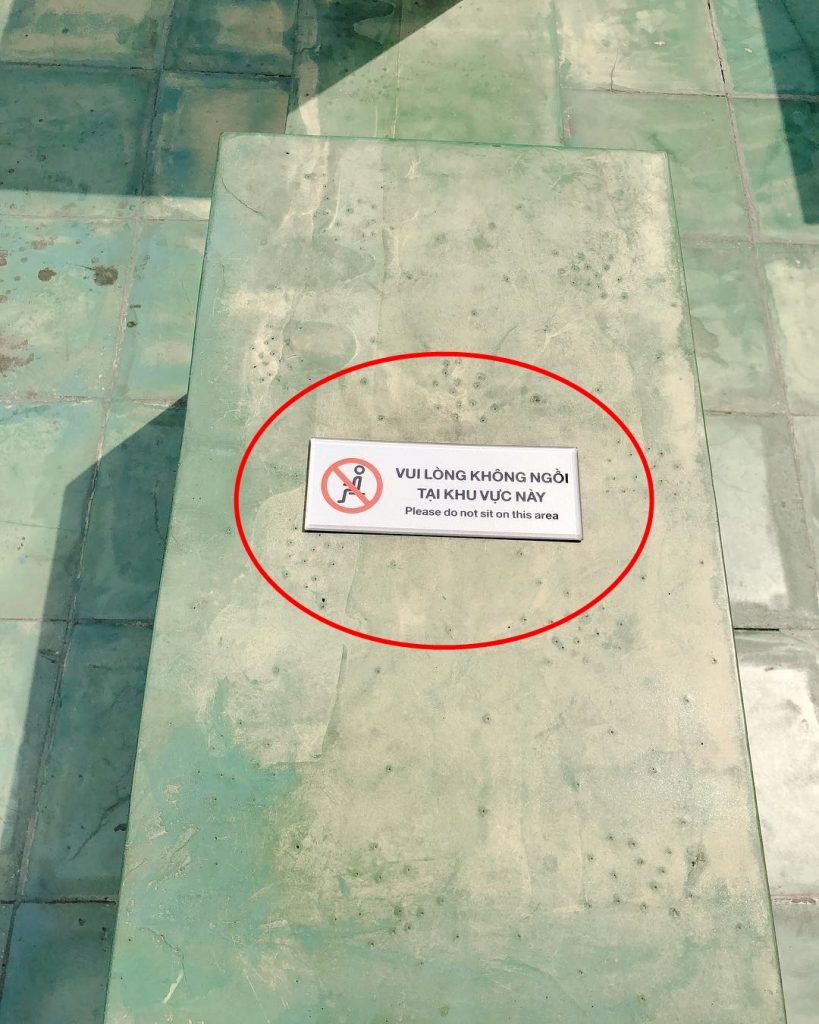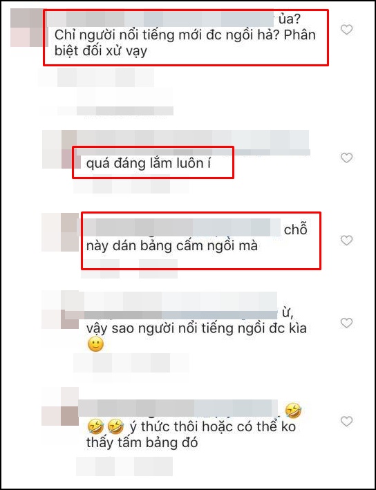 Chính vì thế, nhiều bạn đã tỏ ra bức xúc lên tiếng rằng: “Chỉ người nổi tiếng mới được ngồi?”, “Chỗ này dán bảng cấm ngồi mà!”, “Chỗ này có cái bảng ghi là không được ngồi lên đó í chị”.