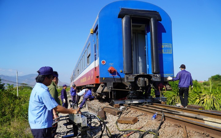 Đến 15h30 chiều nay, hàng chục cán bộ và nhân viên đường sắt vẫn đang tiến hành đo vẽ hiện trường, tìm cách khắc phục sự cố.