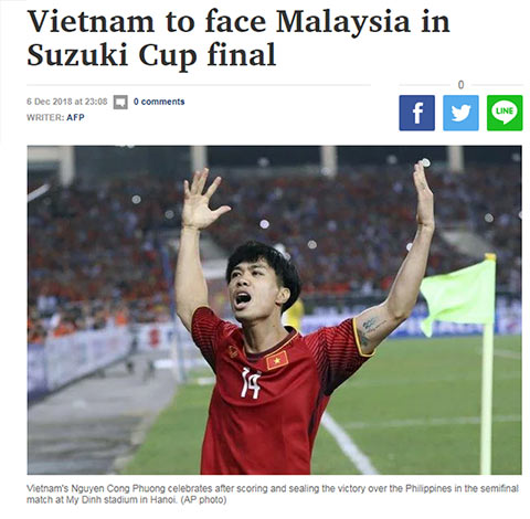 Tờ Siamsport - một tờ báo thể thao có tiếng của Thái Lan tin rằng Việt Nam sẽ giành ngôi vô địch trong trận chung kết AFF Cup 2018: "Việt Nam sẽ gặp Malaysia ở chung kết AFF Suzuki Cup 2018. Dưới sự chứng kiến của 4 vạn khán giả ở Hà Nội, Việt Nam đã tạo ra một loạt cơ hội và ghi 2 bàn thắng. Giờ thì ngôi vô địch đang nằm trong tầm tay của Việt Nam. Họ đang ngày càng gần thời điểm chạm tay vào chức vô địch thứ 2 trong lịch sử, ngay cả khi đối thủ của họ ở chung kết là Malaysia - đội đã loại Thái Lan ở bán kết".