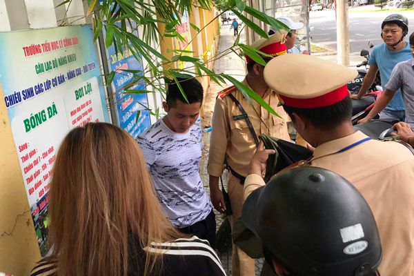 Cùng ngày, một tổ CSGT Công an quận Hải Châu làm nhiệm vụ ở đường Nguyễn Hữu Thọ thì phát hiện đôi nam nữ đi trên xe máy. Tổ công tác đã ra hiệu dừng phương tiện kiểm tra khi thấy nam thanh niên điều khiển xe có dấu hiệu vi phạm.