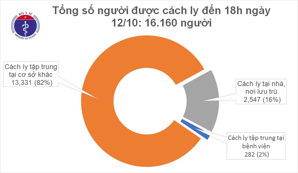 - Tính từ 6h đến 18h ngày 12/10: 1 ca mắc mới là ca nhập cảnh được cách ly ngay.
