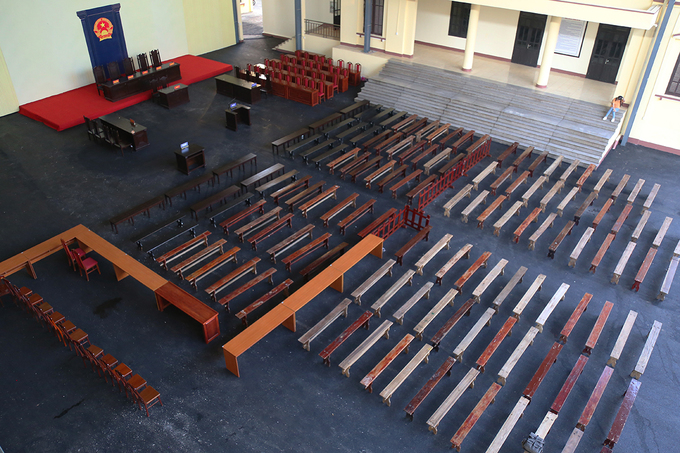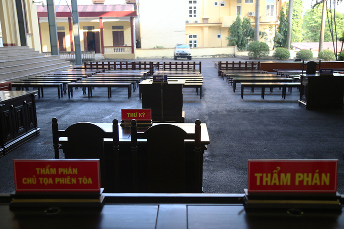 Phiên xử có một bị hại nhưng theo thông báo, người này vừa có đơn xin xét xử vắng mặt. Bởi vậy khu vực dành cho bị hại có thể bỏ trống hoặc bố trí việc khác.