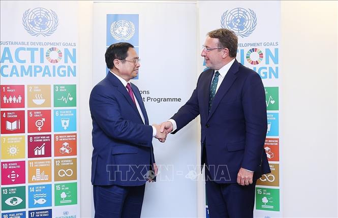 * Tại cuộc gặp với Tổng Giám đốc Chương trình Phát triển Liên hợp quốc (UNDP) Achim Steiner, Thủ tướng Chính phủ Phạm Minh Chính đánh giá cao vai trò quan trọng, định hướng chiến lược và dẫn dắt hiện nay của UNDP trong hệ thống phát triển LHQ trong thúc đẩy thực hiện Chương trình nghị sự 2030 vì Phát triển bền vững và các Mục tiêu Phát triển Bền vững (SDG); đồng thời cảm ơn UNDP đã luôn đồng hành, hỗ trợ Việt Nam trong công cuộc tái thiết, xây dựng và phát triển kinh tế-xã hội trong gần 50 năm qua. Thủ tướng hoan nghênh và đánh giá cao Chương trình Hành động Năng lượng LHQ (UN-Energy Plan of Action) mà LHQ vừa phát động và cá nhân ông Achim Steiner là Đồng Chủ tịch, với mục tiêu hỗ trợ các nước chuyển đổi năng lượng công bằng, giảm phát thải khí nhà kính và tăng cường ứng phó với biến đổi khí hậu.