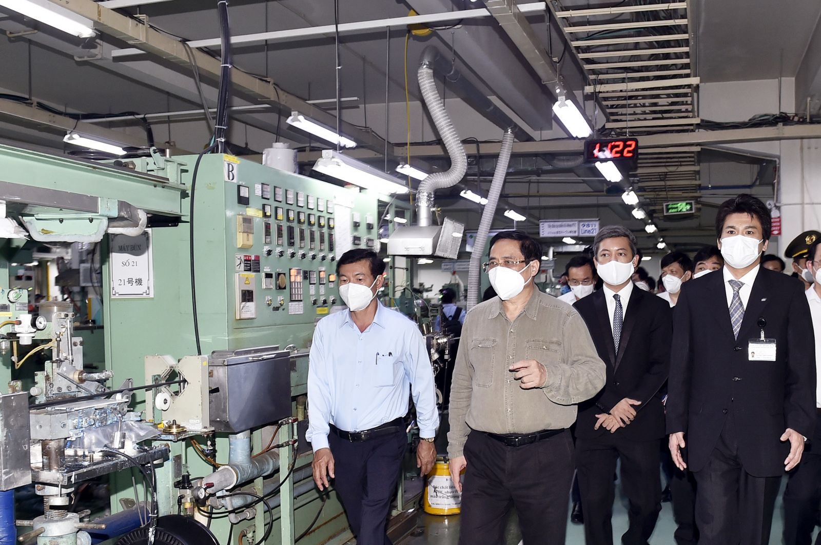 Thủ tướng và đoàn công tác đã tới thị sát khu cách ly tại ký túc xá Đại học Quốc gia TPHCM (thành phố Thủ Đức); làm việc với Công ty Nanogen tại khu công nghệ cao TPHCM-đơn vị nghiên cứu, sản xuất vaccine Nanocovax phòng COVID-19; thăm công ty Nissei Electric Việt Nam-doanh nghiệp Nhật Bản chuyên sản xuất dây cáp điện… tại khu chế xuất Tân Thuận.