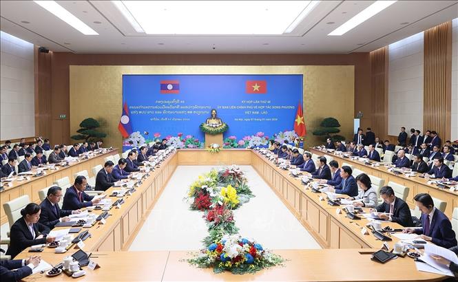 Sáng 7/1, tại Trụ sở Chính phủ, Thủ tướng Chính phủ Phạm Minh Chính và Thủ tướng Chính phủ Lào Sonexay Siphandone đồng chủ trì Kỳ họp lần thứ 46 Ủy ban liên Chính phủ về hợp tác song phương Việt Nam - Lào. Phiên họp tập trung trao đổi, thống nhất các nội dung đánh giá kết quả triển khai thực hiện trong năm qua, nhất là các vấn đề hai bên đã giải quyết dứt điểm, các công việc còn tồn đọng, hướng xử lý cũng như các nhiệm vụ, định hướng mới trong năm 2024.