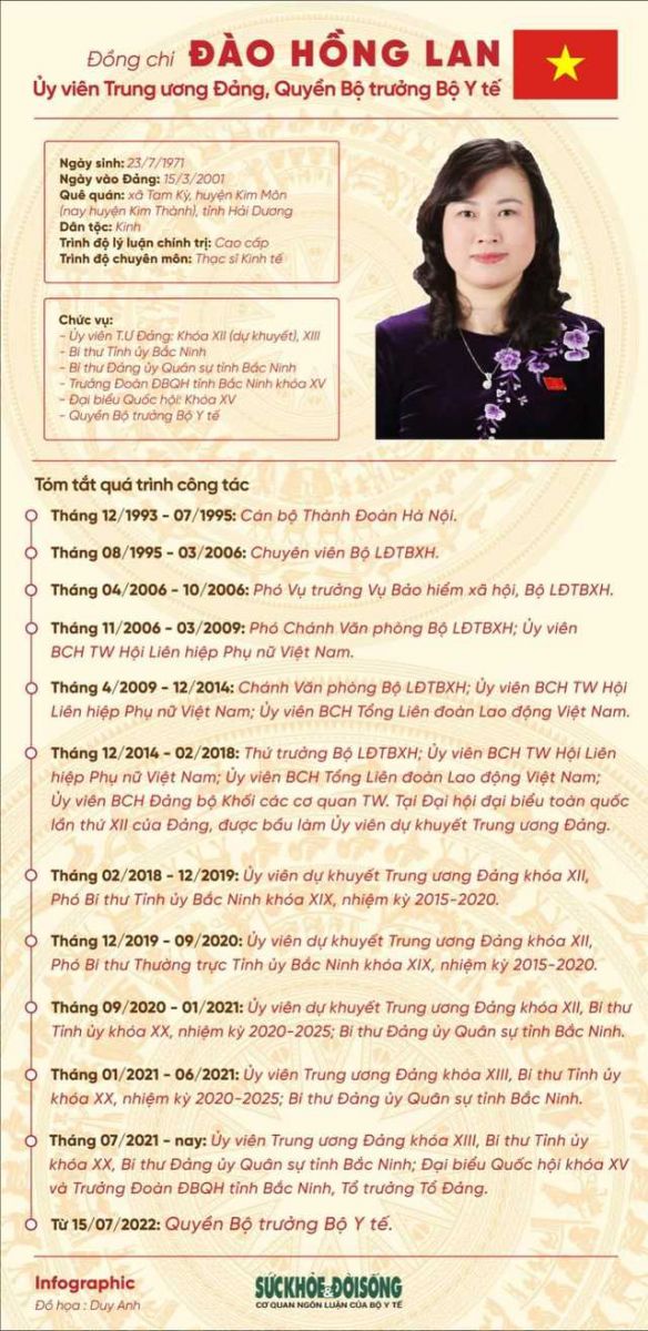 Ngày 15/7, Thủ tướng Chính phủ Phạm Minh Chính ký Quyết định 839/QĐ-TTg giao Quyền Bộ trưởng Bộ Y tế đối với đồng chí Đào Hồng Lan, Ủy viên Trung ương Đảng, Bí thư Ban Cán sự Đảng Bộ Y tế.