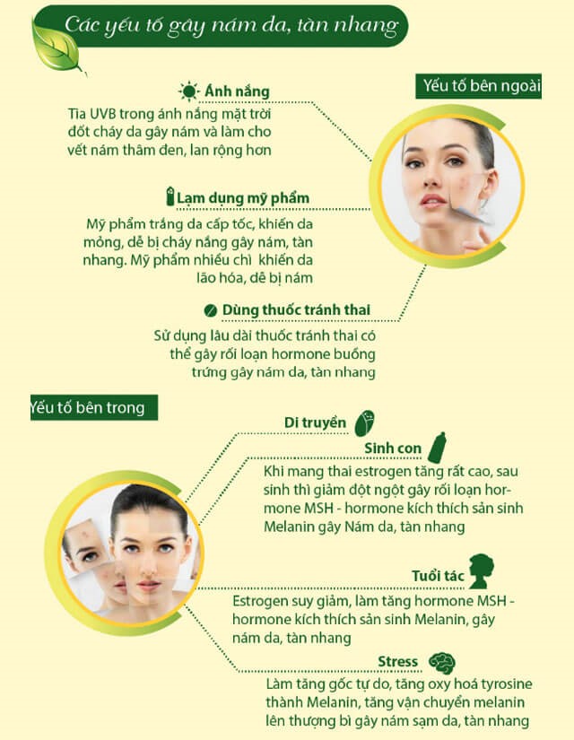 Nám da là hiện tượng tăng sinh sắc tố melanin trên da, đây là tình trạng phổ biến ở nhiều phụ nữ và dễ dàng gặp phải ở phụ nữ mang thai hoặc phụ nữ tiền mãn kinh. Ngoài ra, việc sử dụng mỹ phẩm, sử thuốc tránh thai cũng là một trong nguyên nhân khiến nám tăng sinh mạnh.