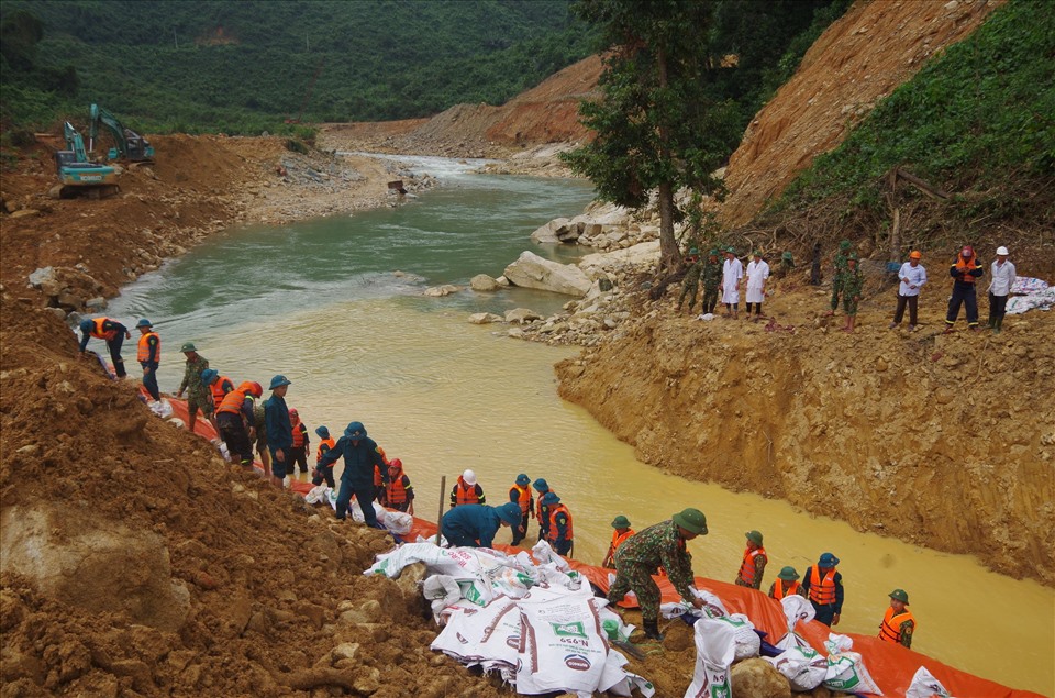 Trước đó, vào tối 21/11, việc đắp đập để nắn dòng Rào Trăng đoạn qua khu vực sạt lở ở thủy điện Rào Trăng 3, xã Phong Xuân, huyện Phong Điền cơ bản hoàn tất. Đập này cao hơn 3,5 m, rộng 5 m, dài 15 m được đắp bằng đất, nằm ở thượng lưu ngay vị trí sạt lở của thủy điện Rào Trăng 3. Sau khi đập đắp hoàn thành, dòng nước Rào Trăng chảy vào dòng nhân tạo vừa được đào xong với độ sâu chừng 3m, rộng 5m và dài 150m.