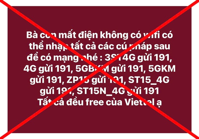 Lại thế này nữa, một tờ báo thông tin: "Mới đây, Viettel Telecom lên tiếng phủ nhận sau khi nhiều tài khoản lan truyền thông tin về cách soạn tin nhắn để sử dụng Internet miễn phí. Một số bài viết còn tăng thêm tính thuyết phục bằng cách chèn thêm từ khóa như "hỗ trợ bão lũ", "chỉ thuê bao ở vùng bão lũ mới đăng ký được", nhận hàng nghìn lượt tương tác và chia sẻ. Đây là tin giả mạo không có thật".