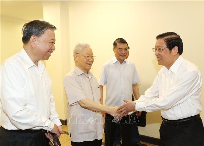 Cùng dự và chủ trì Hội nghị có các đồng chí Ủy viên Bộ Chính trị: Trương Thị Mai, Thường trực Ban Bí thư, Bí thư Trung ương Đảng, Trưởng ban Tổ chức Trung ương, Phó Trưởng ban Chỉ đạo; Phan Đình Trạc, Bí thư Trung ương Đảng, Trưởng ban Nội chính Trung ương, Phó Trưởng ban Thường trực Ban Chỉ đạo; Trần Cẩm Tú, Bí thư Trung ương Đảng, Chủ nhiệm Ủy ban Kiểm tra Trung ương, Phó Trưởng ban Chỉ đạo; Tô Lâm, Bộ trưởng Bộ Công an, Phó Trưởng ban Chỉ đạo.