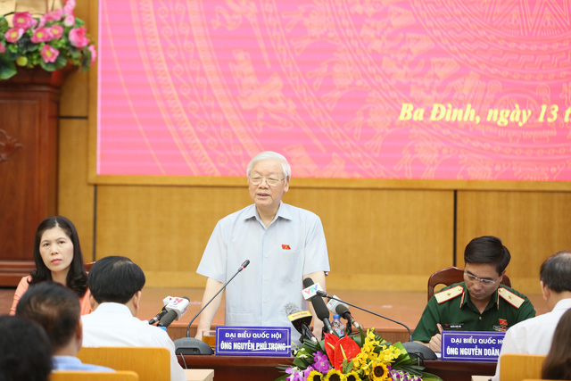 Phúc đáp sự quan tâm của cử tri quận Ba Đình, Hoàn Kiếm (Hà Nội), sáng 13/5, Tổng Bí thư Nguyễn Phú Trọng chân thành cảm ơn và tiếp thu những ý kiến đóng góp tâm huyết, xác đáng của cử tri, đã đề cập nhiều vấn đề quan trọng của đất nước và thiết thực đối với đời sống nhân dân. Đây là những ý kiến hết sức quý báu, thể hiện tâm huyết, trách nhiệm của cử tri, xuất phát từ nhiệt huyết, mong muốn đóng góp xây dựng Đảng, xây dựng đất nước.