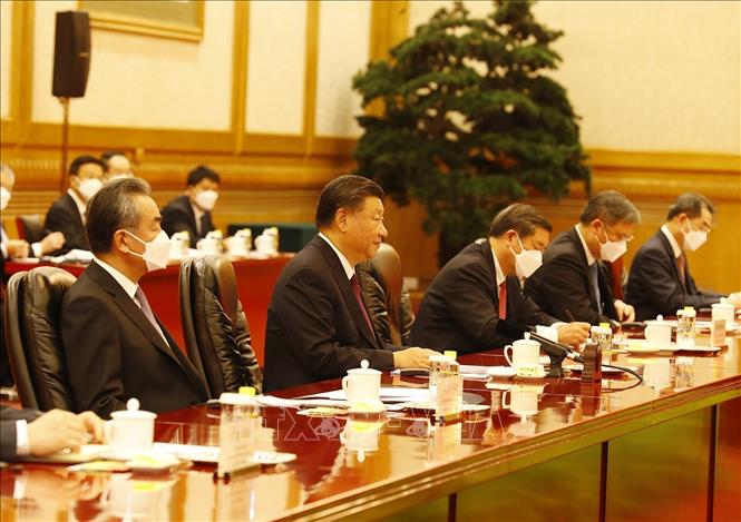 Tổng Bí thư, Chủ tịch Trung Quốc Tập Cận Bình thay mặt Đảng, Nhà nước, Chính phủ và nhân dân Trung Quốc nhiệt liệt chào mừng Tổng Bí thư Nguyễn Phú Trọng và Đoàn đại biểu cấp cao Việt Nam thăm chính thức Trung Quốc, bày tỏ vui mừng được gặp lại Tổng Bí thư Nguyễn Phú Trọng sau 5 năm.