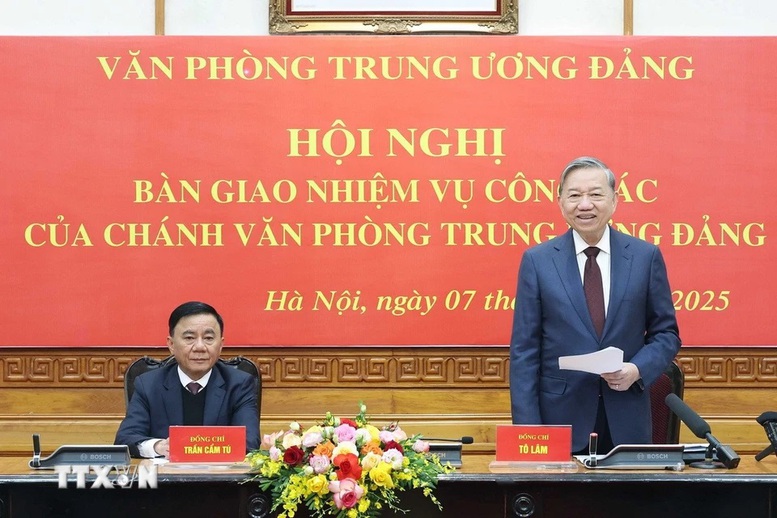 Thay mặt Bộ Chính trị, Ban Bí thư tặng hoa chúc mừng tân Chánh Văn phòng Trung ương Đảng Lê Hoài Trung, Tổng Bí thư Tô Lâm nêu rõ, nhiều chủ trương quan trọng của Đảng xuất phát từ sự tham mưu của Văn phòng Trung ương Đảng, đặc biệt trong thời điểm hiện nay cả hệ thống chính trị đang triển khai quyết liệt Kết luận của Trung ương về việc thực hiện Nghị quyết 18 về tinh gọn bộ máy chính trị hiệu năng, hiệu lực, hiệu quả, chuẩn bị tiến hành Đại hội Đảng bộ các cấp tiến tới Đại hội Đảng toàn quốc lần thứ 14, giai đoạn tăng tốc bức phá của nền kinh tế, do đó nhiệm vụ của Văn phòng Trung ương Đảng là vô cùng quan trọng.