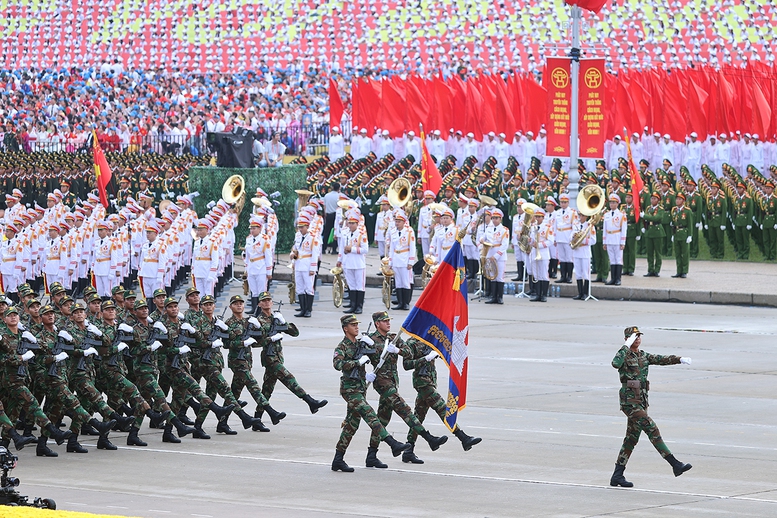 Tham gia tổng duyệt đi qua lễ đài lần lượt là 26 khối Quân đội; 4 khối quân đội nước ngoài (Trung Quốc, Nga, Lào, Campuchia); khối dân quân, du kích; 17 khối Công an; 14 khối xe pháo quân sự; 9 khối xe đặc chủng Công an.