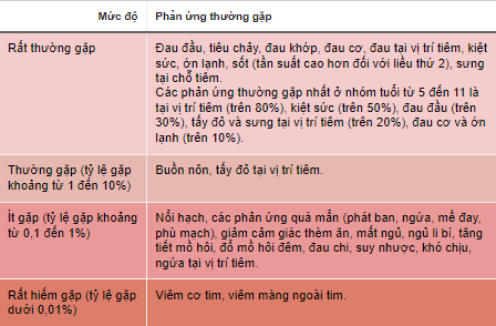 Cụ thể, trẻ có thể gặp một số phản ứng tại chỗ như sưng, đau tại điểm tiêm nhưng biểu hiện thoáng qua và rất nhanh. Một số phản ứng toàn thân cũng được ghi nhận như mệt mỏi tương tự cúm hay sốt nhẹ trong vài ngày. Ngoài ra, tỷ lệ phản vệ sau tiêm vaccine ở nhóm trẻ 5 - 11 tuổi khá thấp.