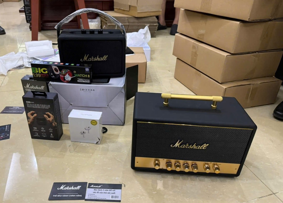 Trước đó, Phòng An ninh mạng và phòng, chống tội phạm sử dụng công nghệ cao Công an TP.Hà Nội phát hiện nhóm đối tượng quảng cáo rao bán trên mạng các sản phẩm mang nhãn hiệu Marshall – thương hiệu âm thanh nổi tiếng đến từ Vương quốc Anh với mức giảm giá tới 70% cho các dòng sản phẩm như loa, tai nghe, ampli.