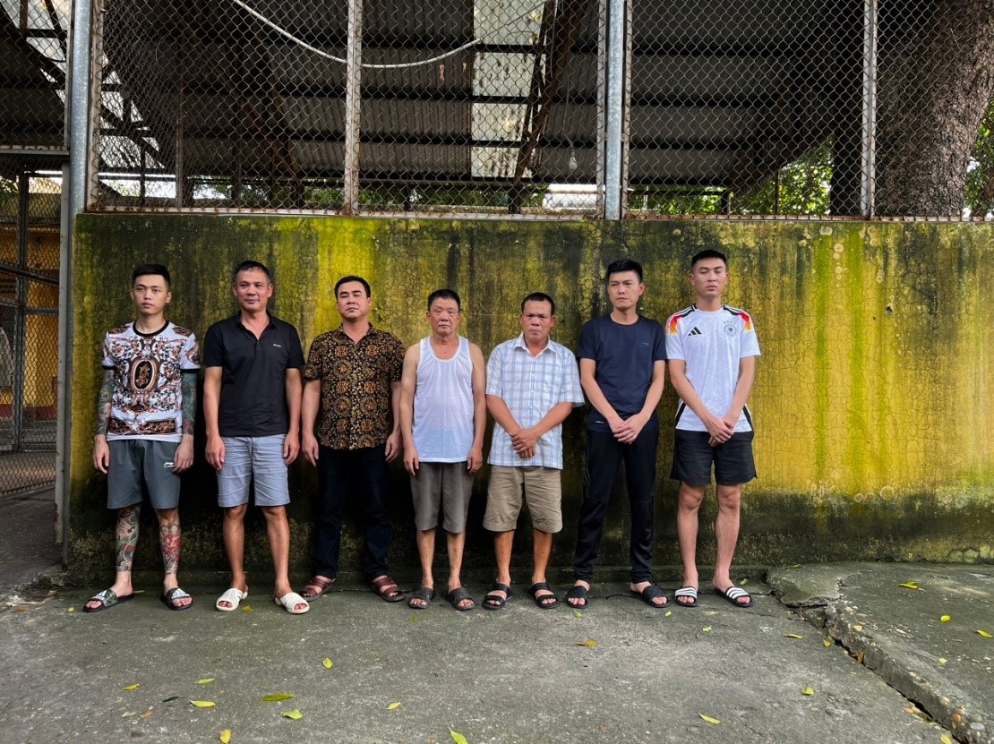 Các đối tượng bị bắt giữ gồm: Nguyễn Tuấn Anh (SN 1989); Đỗ Quang Tuấn (SN 1998); Nguyễn Minh Hiếu (SN 1997); Đỗ Văn Là (SN 1966), Hoàng Văn Đông (SN 1972); Đỗ Văn Vĩ (SN 1989); Thân Văn Hòa (SN 1988); Chu Thúc Vị (SN 1981); Chu Quý Nghĩa (SN 1980) và Đỗ Văn Nam (SN 1999); thu giữ 1 case máy tính, 25 điện thoại di động cùng nhiều đồ vật, tài liệu liên quan khác.