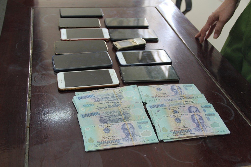 Trong số các đối tượng bị bắt có 16 đối tượng trú thành phố Vinh, một đối tượng trú huyện Hưng Nguyên. Qua khám xét, lực lượng chức năng tạm giữ 120 triệu đồng tiền mặt, 25 điện thoại di động, 3 cáp đề và một số tang vật khác.