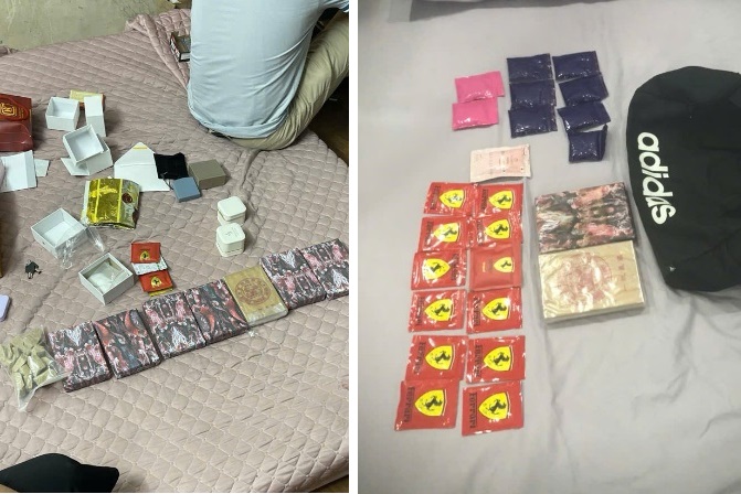 Tiến hành khám xét khẩn cấp chỗ ở của Nguyễn Đình Huy tại Phòng 203 A1 Tập thể Mỳ, phường Quang Trung, quận Đống Đa, thu giữ 2 bánh Heroine, gần 2000 viên ma túy tổng hợp và 10 gói ma túy dạng “nước vui”. Tại cơ quan Công an, các đối tượng đã khai nhận hành vi mua bán và tổ chức sử dụng trái phép chất ma túy của mình.