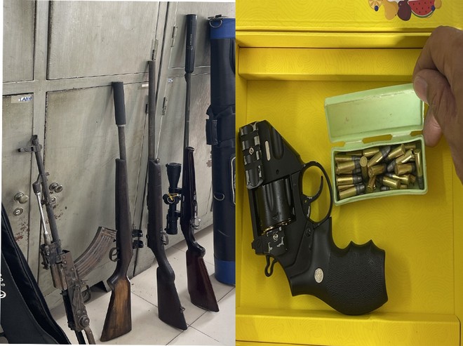 Tiến hành khám xét khẩn cấp chỗ ở của vợ chồng Nguyễn Duy Khánh, cơ quan Công an phát hiện thu giữ 5 khẩu súng (1 khẩu AK, 1 khẩu súng ngắn, 3 khẩu súng trường), 26 viên đạn; 1 cân điện tử. Tại cơ quan Công an các đối tượng đã khai nhận hành vi phạm tội của mình.