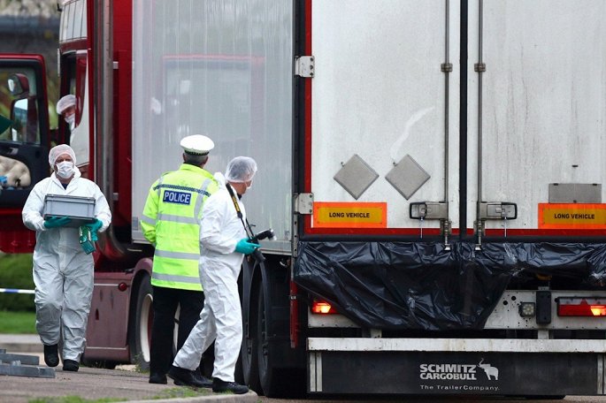 Container chở 39 thi thể được phát hiện tại khu công nghiệp Waterglade ngày 23/10 vào khoảng 13h30, gần 30 phút sau khi tài xế đến từ Bắc Ireland đưa container rời khỏi cảng Purfleet. Người tài xế 25 tuổi đã bị bắt tạm gia để phục vụ điều tra. Cảnh sát Anh xem đây là nghi án giết người và nghi ngờ có bàn tay của các nhóm buôn người.