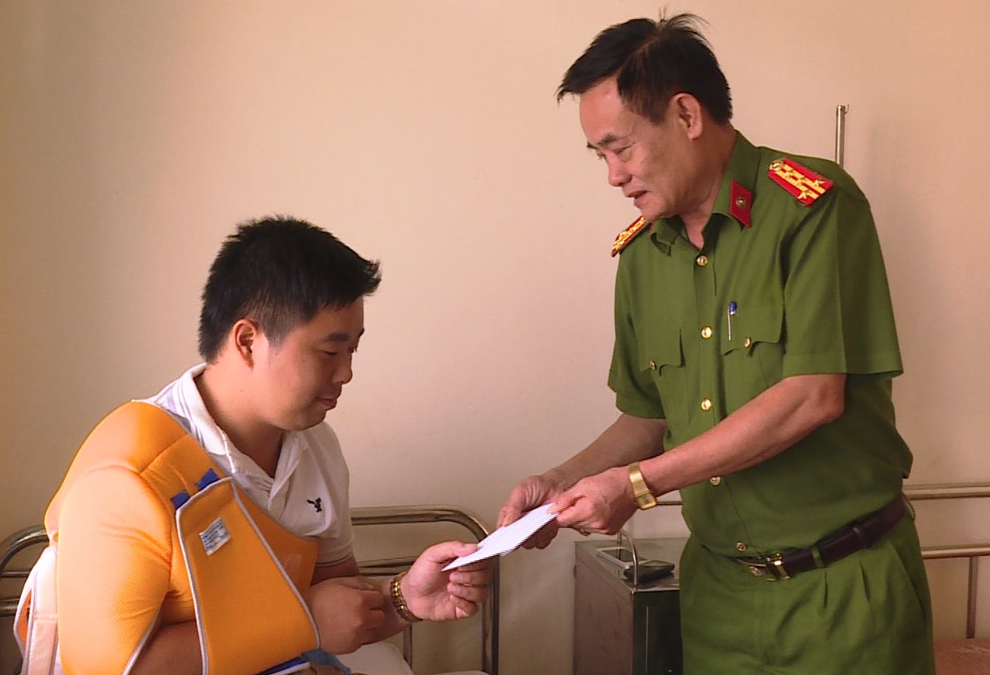 Theo đó, sáng ngày 22/1 ban Giám đốc Công an tỉnh Đắk Lắk đã đến bệnh viện Công an tỉnh để thăm hỏi và động viên tinh thần một cán bộ Công an huyện Krông Búk, tỉnh Đắk Lắk bị trọng thương trong lúc đang làm nhiệm vụ.