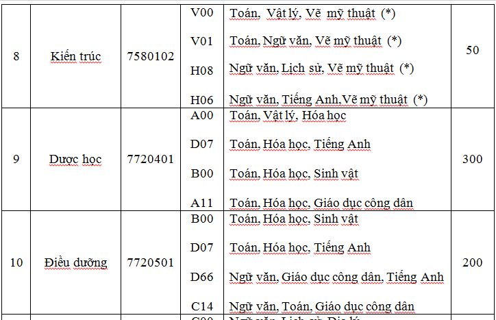 Lưu ý: Các thí sinh trúng tuyển đã tốt nghiệp trình độ trung cấp chuyên nghiệp hoặc cao đẳng cùng khối ngành được hội đồng khoa học đào tạo nhà trường xét công nhận kiến thức đã tích lũy sẽ được miễn học, miễn thi các học phần này trong chương trình đào tạo và được miễn giảm học phí theo số tín chỉ đã được công nhận.