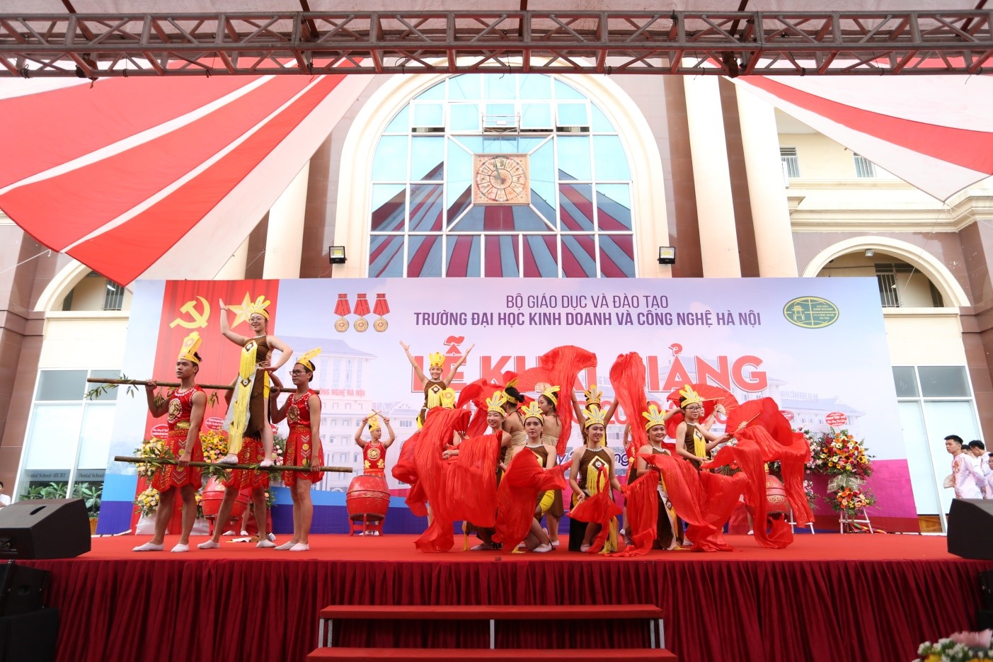 Các tân sinh viên còn được hòa mình vào các tiết mục văn nghệ sôi động, ấn tượng trong buổi lễ do Đoàn Thanh niên, Hội sinh viên Trường ĐH Kinh doanh và Công nghệ Hà Nội tổ chức.