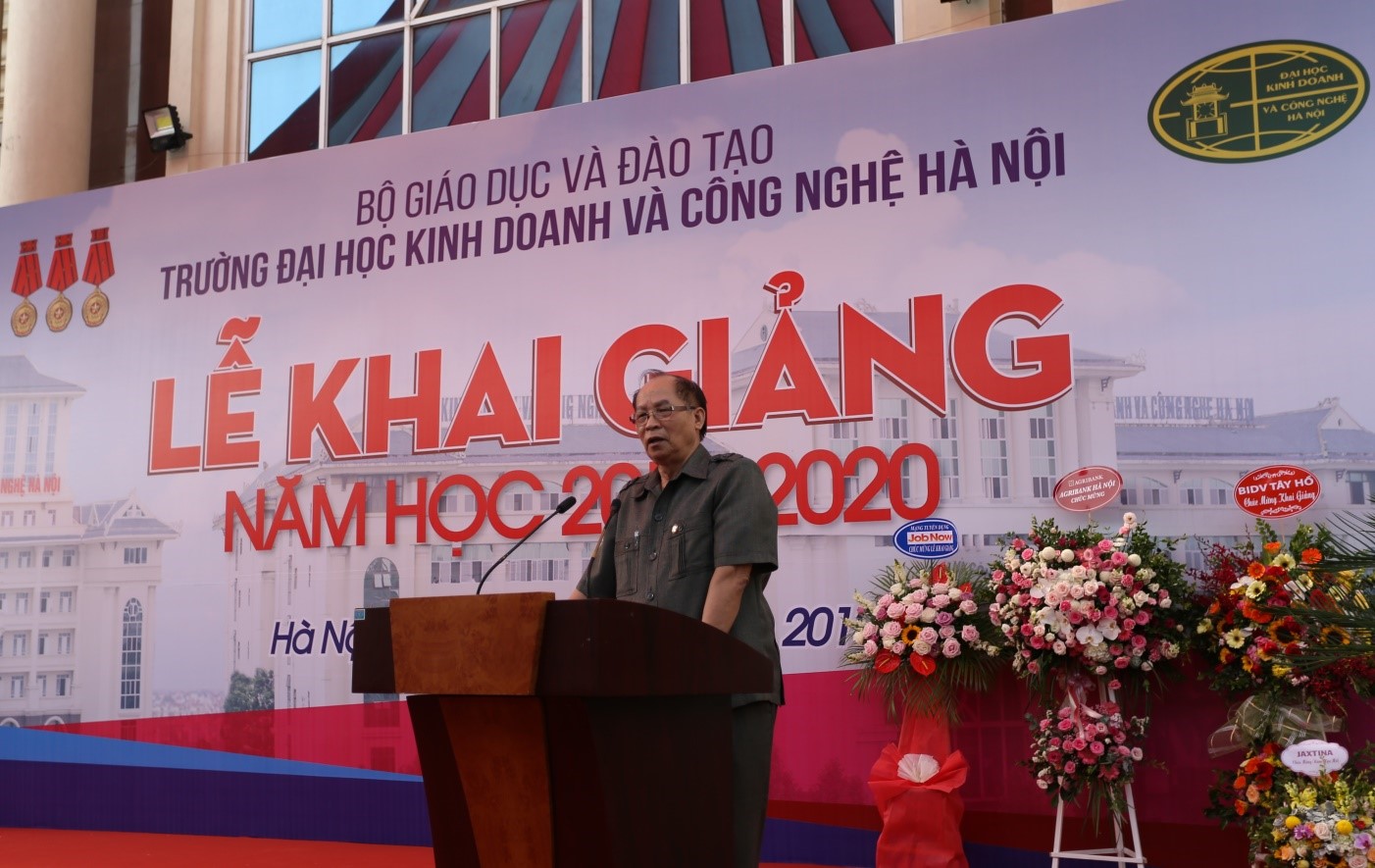 Mở đầu buổi Lễ khai giảng, thay mặt Hội đồng Quản trị, Ban Giám hiệu, TS. Đỗ Quế Lượng - Phó Chủ tịch HĐQT, Phó hiệu trưởng thường trực nhà trường nhiệt liệt chúc mừng và chào đón những tân sinh viên Khóa 24, đồng thời cũng cho biết: “...Trường ĐH Kinh doanh và Công nghệ Hà Nội cho đến nay đã cho ra trường 20 khóa đại học chính quy, 17 khóa đại học liên thông, 15 khóa cao học, 04 khóa Tiến sĩ. Sinh viên sau khi ra trường đều có việc làm, không có hiện tượng sinh viên thất nghiệp, có những bạn đã trở thành Giám đốc, Phó Giám đốc doanh nghiệp hoặc là Trưởng phòng, Phó phòng của đơn vị, công ty, xí nghiệp.