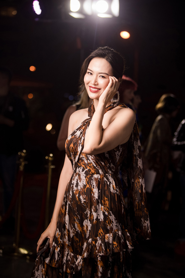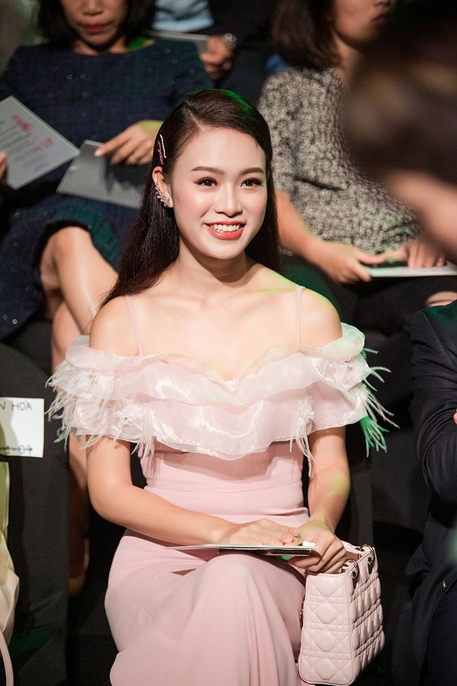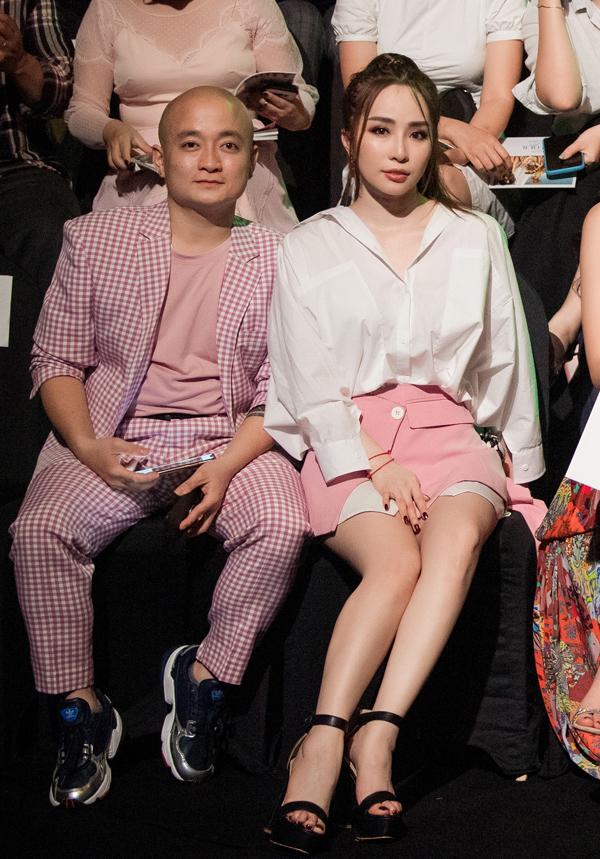 Hoa hậu chuyển giới Hương Giang cũng là nhân vật được nhiều ống kính săn đón trong event tối qua. Cô triệt để khoe vòng 1 nóng bỏng với váy cúp ngực. Hương Giang được xếp ngồi cùng 'đàn chị' Lý Nhã Kỳ trên hàng ghế đầu tiên để xem show thời trang.