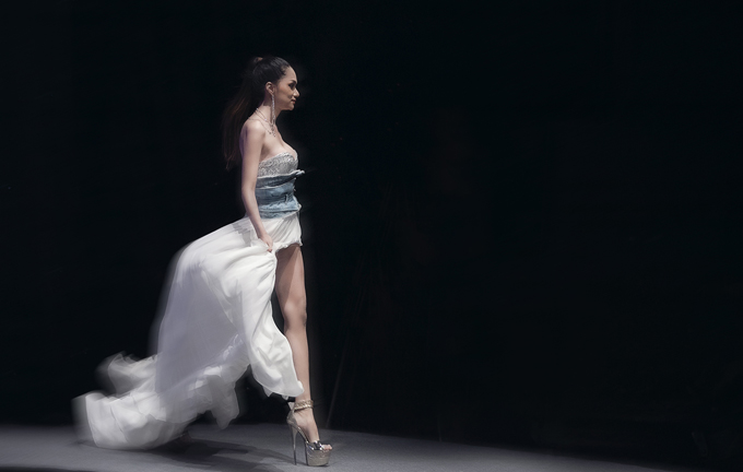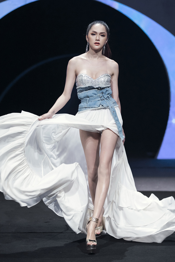 Không chỉ làm khách mời, Hoa hậu chuyển giới 2018 còn đảm nhận vai trò vedette trong show diễn. Đây là lần hiếm hoi cô catwalk.