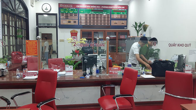 Theo đó, sự việc xảy ra vào khoảng 16h cùng ngày, một đối tượng nam bịt khẩu trang đen, đội nón bảo hiểm, đeo găng tay đen, mang balo, chạy xe máy đến phòng giao dịch Hóa An, thuộc Chi nhánh ngân hàng Agribank (phường Hóa An, TP.Biên Hòa).