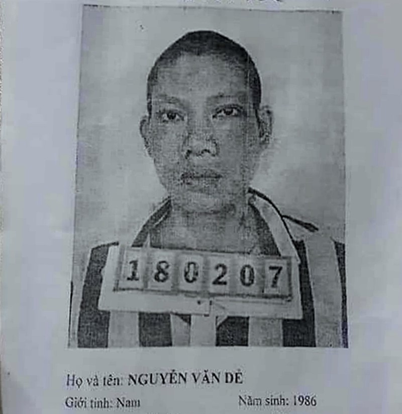 Phạm nhân Nguyễn Văn Dẻ (34 tuổi) ngụ tại xã Gia Canh, huyện Định Quán, tỉnh Đồng Nai đang chấp hành án phạt tù 4 năm tại Phân trại 4, Trại giam Thủ Đức. Ngày 6/9/2020, khi đang điều trị bệnh tại Bệnh viện Đa khoa Bình Thuận, phạm nhân đã bỏ trốn.