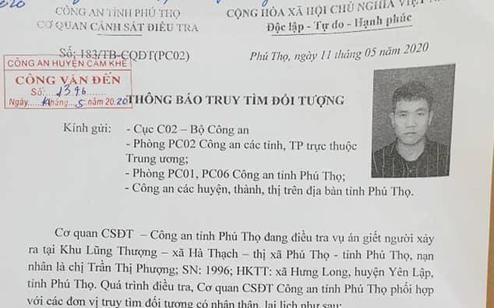 Tối ngày 15/5, trao đổi với Người Đưa Tin Pháp Luật, nguồn tin từ Công an tỉnh Phú Thọ cho biết, đơn vị đang tiến hành truy tìm đối tượng Nguyễn Văn Thêm (SN 1988, trú tại huyện Yên Lập, tỉnh Phú Thọ). Đây là nghi can liên quan đến cái chết của nữ công nhân Trần Thị Ph. (SN 1996, trú tại xã Hưng Long, huyện Yên Lập, tỉnh Phú Thọ) tử vong bất thường trong phòng trọ.