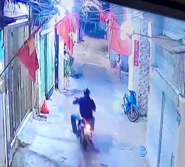 Trích xuất từ camera cho thấy, người đàn ông trên chạy xe máy cầm dao đi lòng vòng, đội mũ bảo hiểm lưỡi trai màu đen, áo khoác đen, quần jean dài màu xanh.