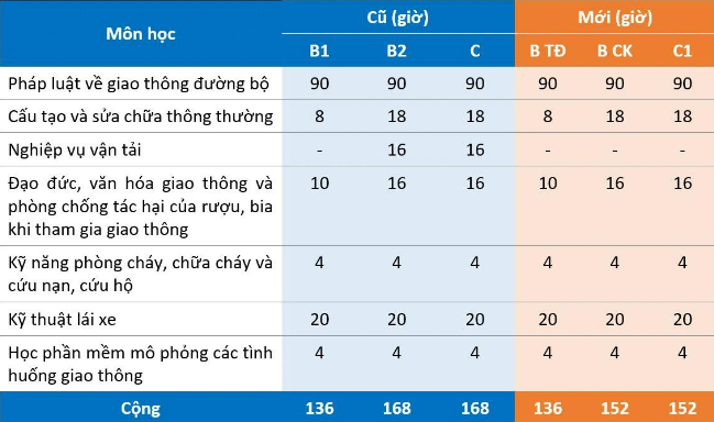 Cụ thể, người học GPLX các hạng B, C1 học lý thuyết với các nội dung: Pháp luật về giao thông đường bộ; kỹ thuật lái xe; cấu tạo và sửa chữa thông thường; đạo đức, văn hóa giao thông và phòng chống tác hại của rượu, bia khi tham gia giao thông; học phần mềm mô phỏng các tình huống giao thông.