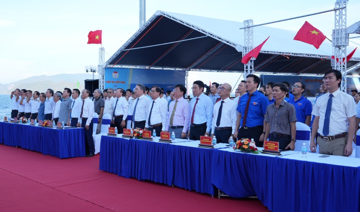 Dịp này, lãnh đạo Hội Luật gia Việt Nam đã trao tặng mô hình cột mốc chủ quyền trên đảo Trường Sa Lớn cho tỉnh Khánh Hòa.
