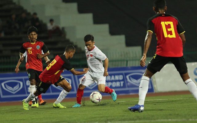 Gặp mặt đối thủ được đánh giá yếu hơn về mọi mặt ở lượt đấu thứ hai là Đông Timor, thầy trò HLV Nguyễn Quốc Tuấn rất quyết tâm giành trọn 3 điểm để qua đó giành quyền vào chơi ở bán kết trước một vòng đấu.