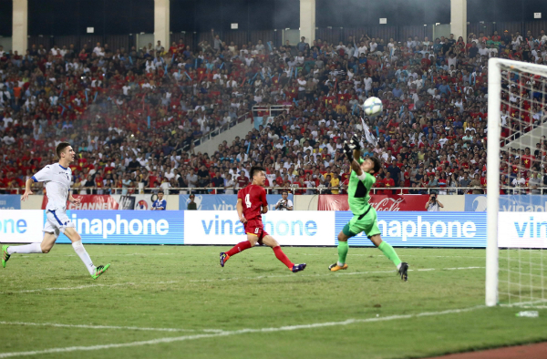 Khác với những trận đấu trước, U23 Việt Nam ra sân với sơ đồ 4 hậu vệ và những tiền đạo chủ chốt như Anh Đức, Văn Quyết cũng được HLV Park Hang Seo tung vào sân ngay từ đầu. Và U23 Việt Nam không che giấu ý đồ tấn công phủ đầu khi ngay đầu trận đấu, rất nhiều tình huống nguy hiểm đã được các cầu thủ của chúng ta tạo ra trước khung thành đối phương.