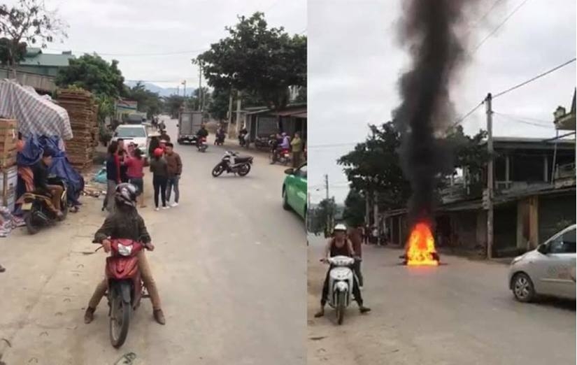 Chiều ngày 17/12, trên mạng xã hội xuất hiện đoạn video clip ghi lại cảnh một chiếc xe đã cháy trơ khung nằm giữa đường với sự chứng kiến của đông đảo người dân kèm theo dòng thông tin cho biết một nam thanh niên đã dùng xăng đốt xe của người phụ nữ sau va chạm giao thông.