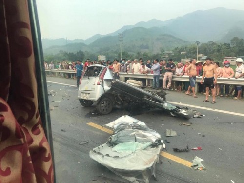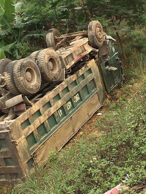 Cú va chạm cực mạnh khiến chiếc xe con gần như nát vụn, tài xế được xác định tên Tr. (ngụ TP Hòa Bình, tỉnh Hòa Bình) tử vong ngay trong xe. Còn chiếc xe ben tiếp tục lao sang bên đường tông gãy nhiều mét ta-luy rồi lao ra khỏi đường, lật ngửa.