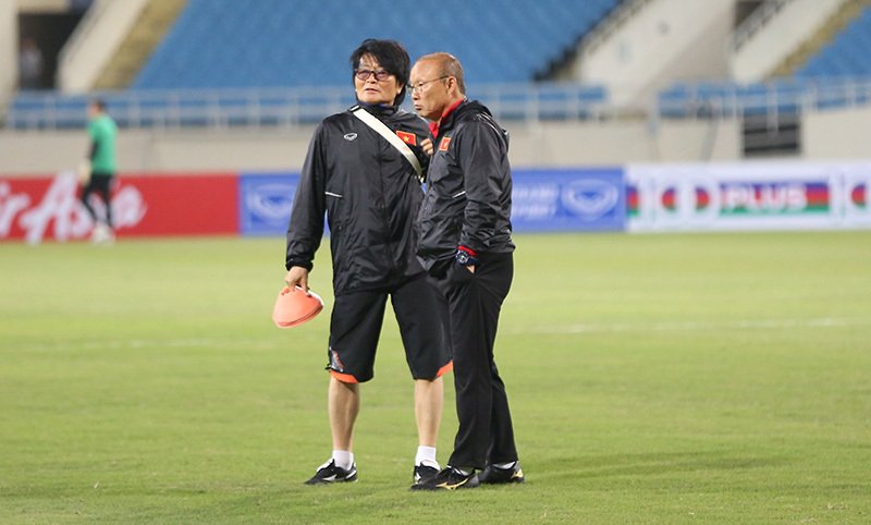 Trong buổi tập luyện, thầy Park tập trung quan sát các cầu thủ ĐT Việt Nam. Sau 15 phút tác nghiệp, báo chí được yêu cầu rời sân để tuyển Việt Nam tập kín.