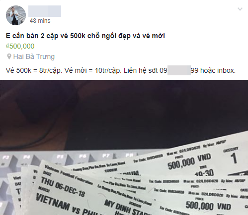 Theo đó, trên nhiều trang "chợ đen" và bán trực tiếp từ "cò" vé ở sân vận động Mỹ Đình, các loại vé đều đã được đẩy lên nhiều lần.