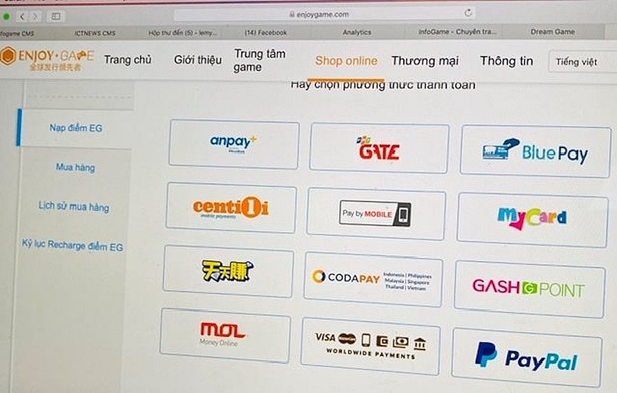 Ngoài ra, người chơi game có thể sử dụng nhiều cổng thanh toán khác như Ngân lượng, thẻ Gate và Anpay… để nạp tiền vào rất nhiều game lậu, game bài khác hay thanh toán bằng thẻ tín dụng ngân hàng. Các cổng thanh toán này còn được sử dụng để giao dịch ở một số game bài lậu từ Trung Quốc.