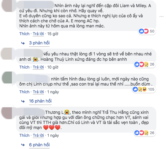 Thậm chí, rất nhiều người hâm mộ của cặp đôi vẫn nuôi hy vọng họ trở về bên nhau. "Thật sự mà nói thì Hoàng Thuỳ linh rất tuyệt. Cô gái kia có là siêu mẫu hay siêu gì cũng không bằng chị Linh.